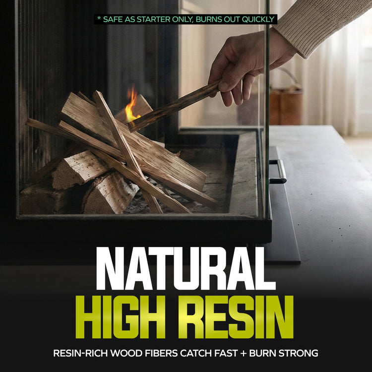 - ALL-NATURAL FIRE STARTER: 100% resin-rich pine wood, no chemicals or additives