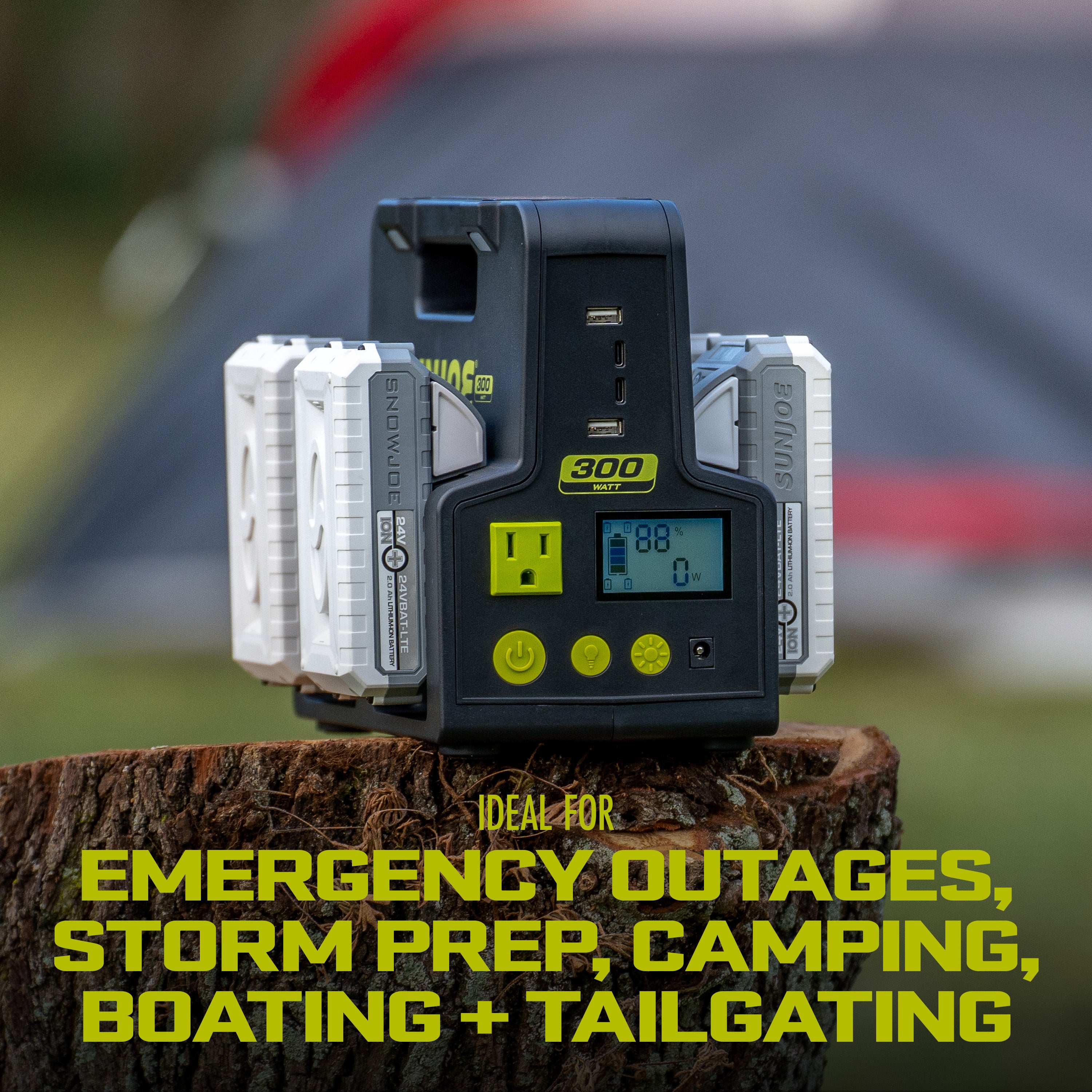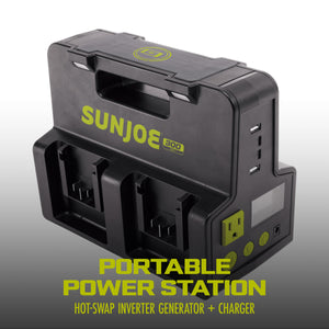 Sun Joe CERTIFIED AUTHENTIC 24V-300WI 24-Volt IONMAX Cordless Hot-Swap Powered Inverter Generator Power Station | W/ AC Adapter, AC Receptacle, 2x USB Type A, 2x USB Type C, LED Spotlight, Wireless Phone Charger | 320-Watt