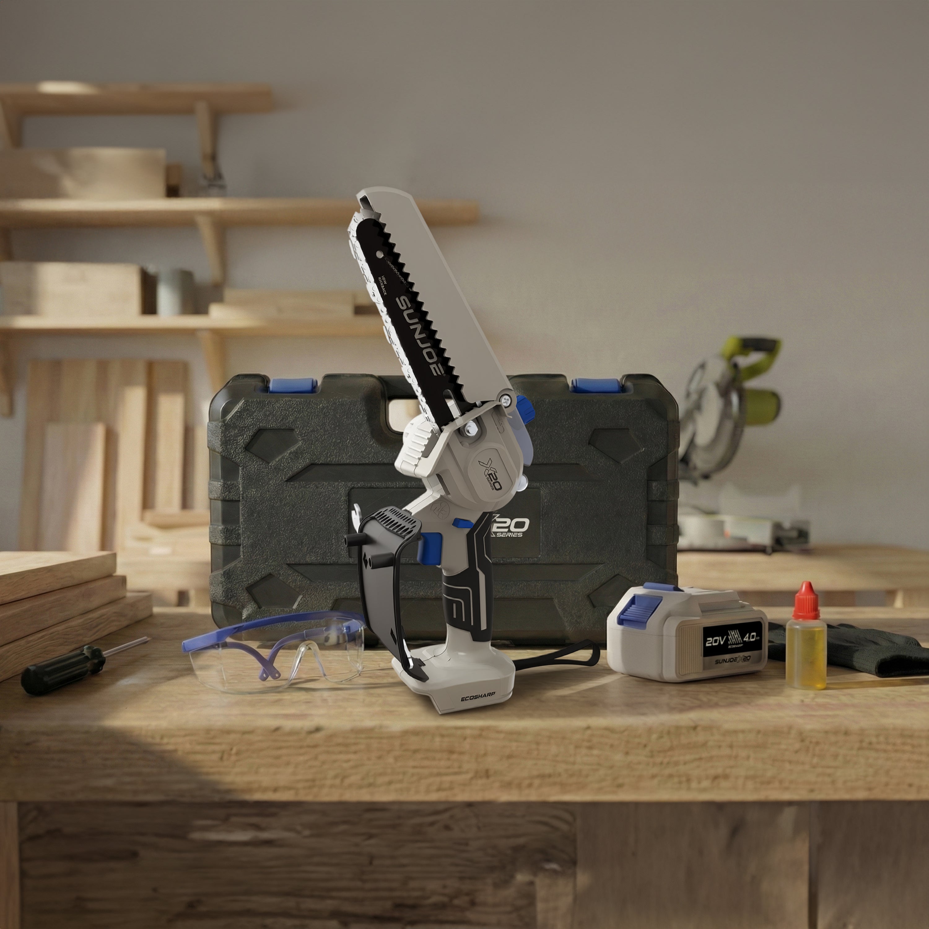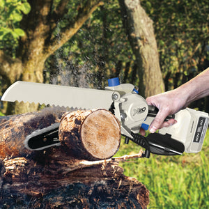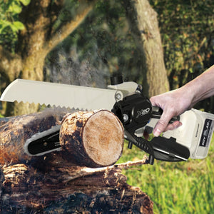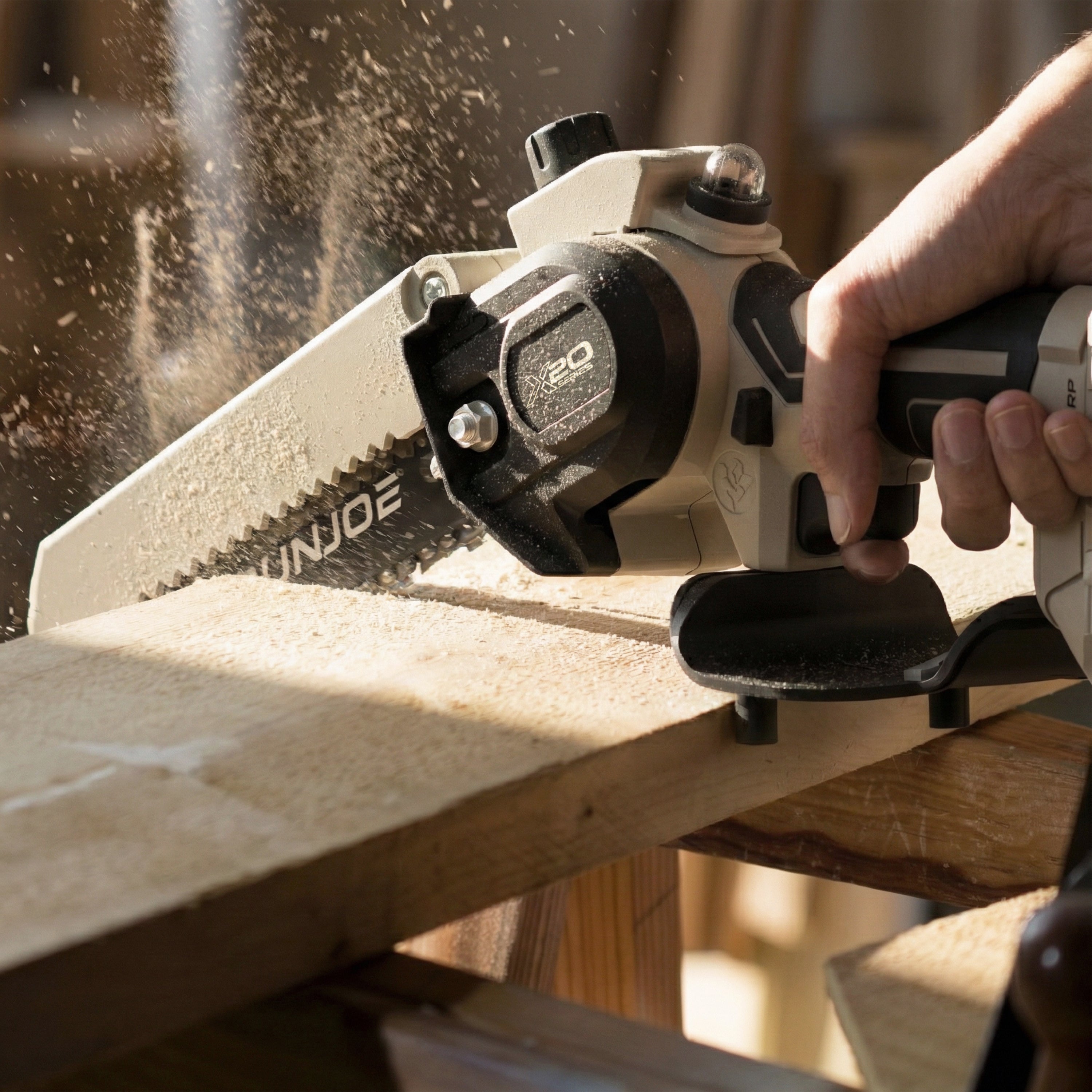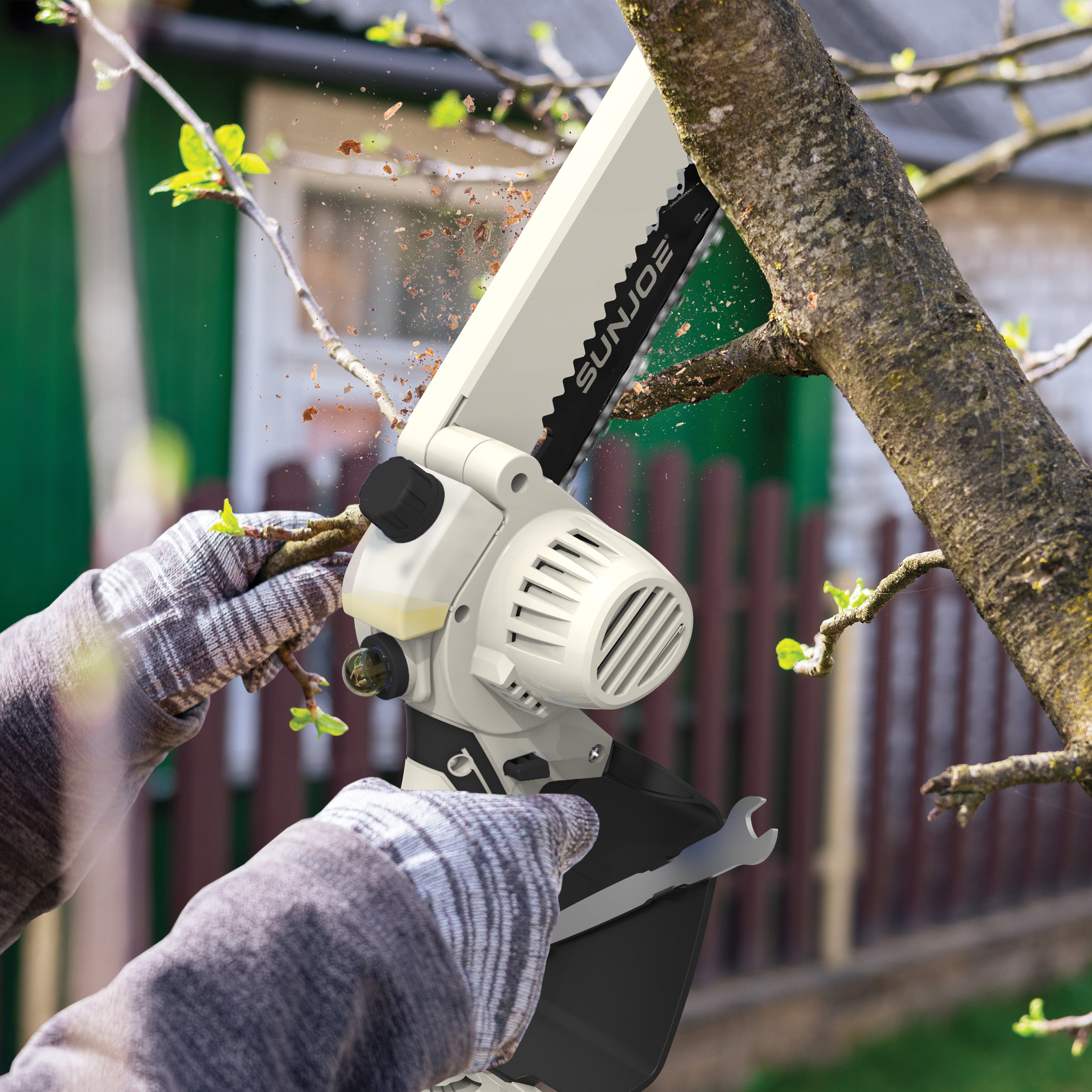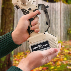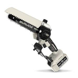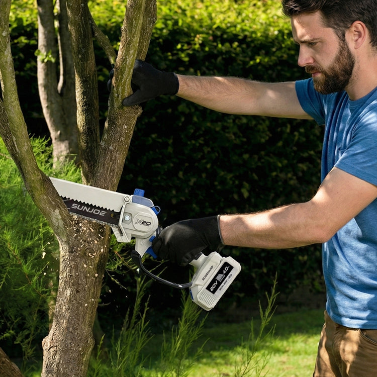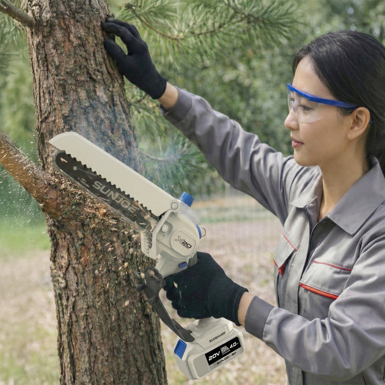 SEE IT? SAW IT! Trim overgrown trees, shape shrubs, and cut kindling with the lightweight and compact Sun Joe® GO pruning chainsaw. With cordless convenience and a 20V ECOSHARP® rechargeable battery on board, this handheld chainsaw easily goes beyond the porch and patio to tackle your outdoor to-do list. Weighing in at under 4 lbs (your handbag is probably heavier!), its generous 6"L saw blade, coupled with one-handed operation, make it easy to trim, saw, cut, and prune -- just squeeze the trigger to slice through branches, logs, and thick thatch in your yard, garden, or garage. This handy hero makes storm cleanup, home improvements (new deck alert!), fall firewood, and landscape maintenance manageable -- without the hassle of extension cords or gas spills.