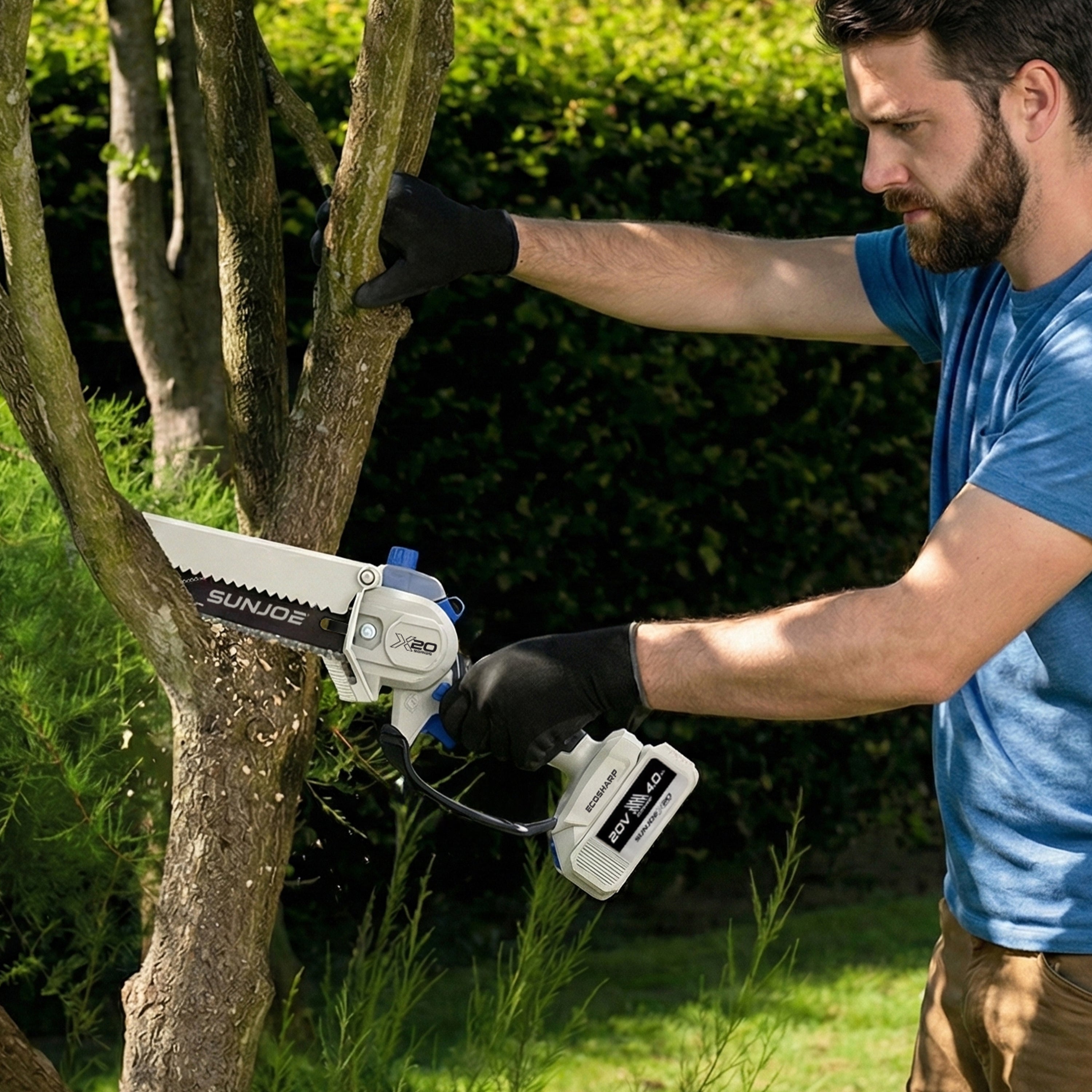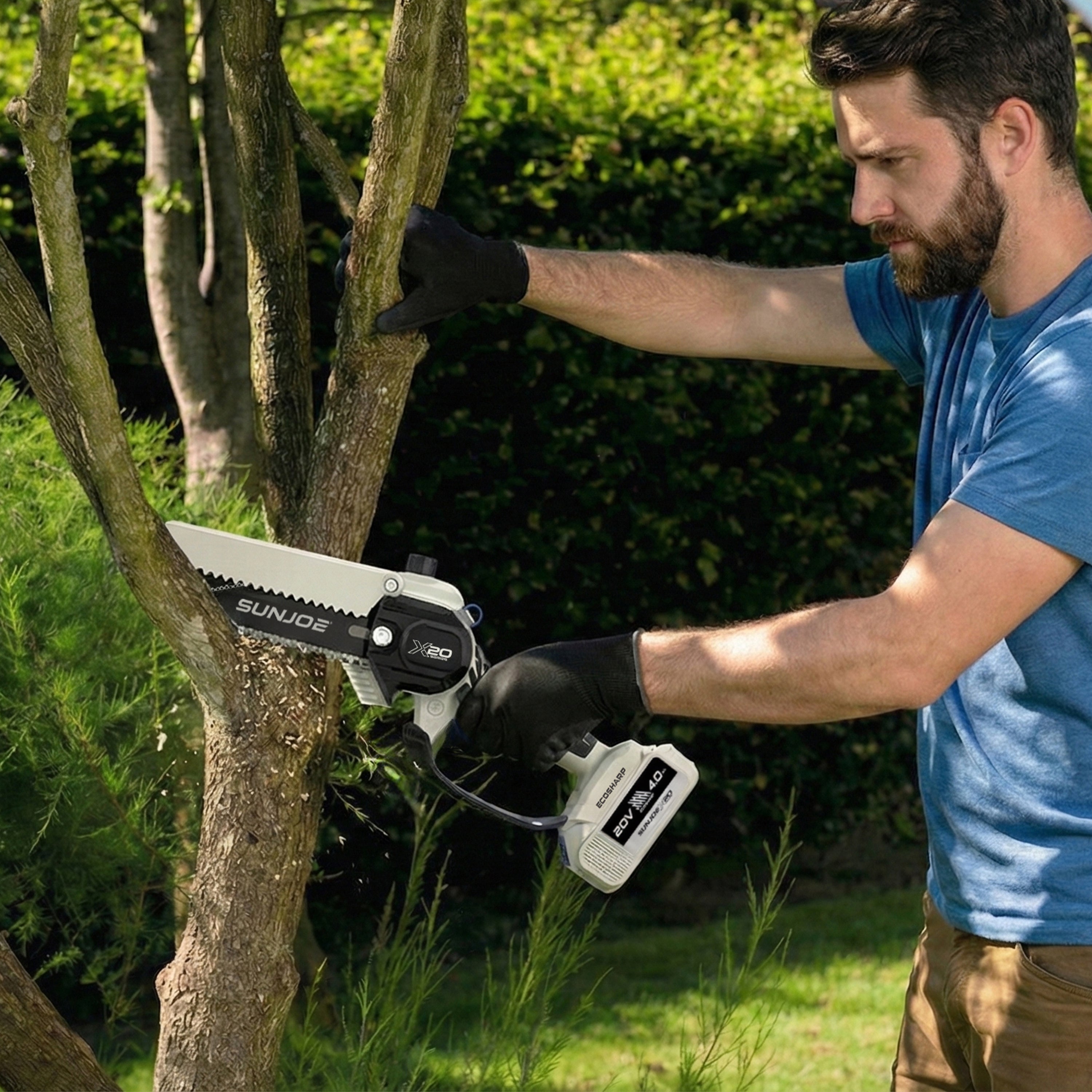 Sun Joe 20-Volt ECOSHARP Cordless X20 Handheld Pruning Saw | 6-inch | W/ 4000 mAh Battery (4.0-Amp) + Charger+ Charger (Black)