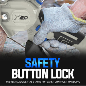 - BUILT-IN SAFETY FEATURES: Safety lock button, chain/sprocket end cover, and bar sheath help prevent accidental contact/starts