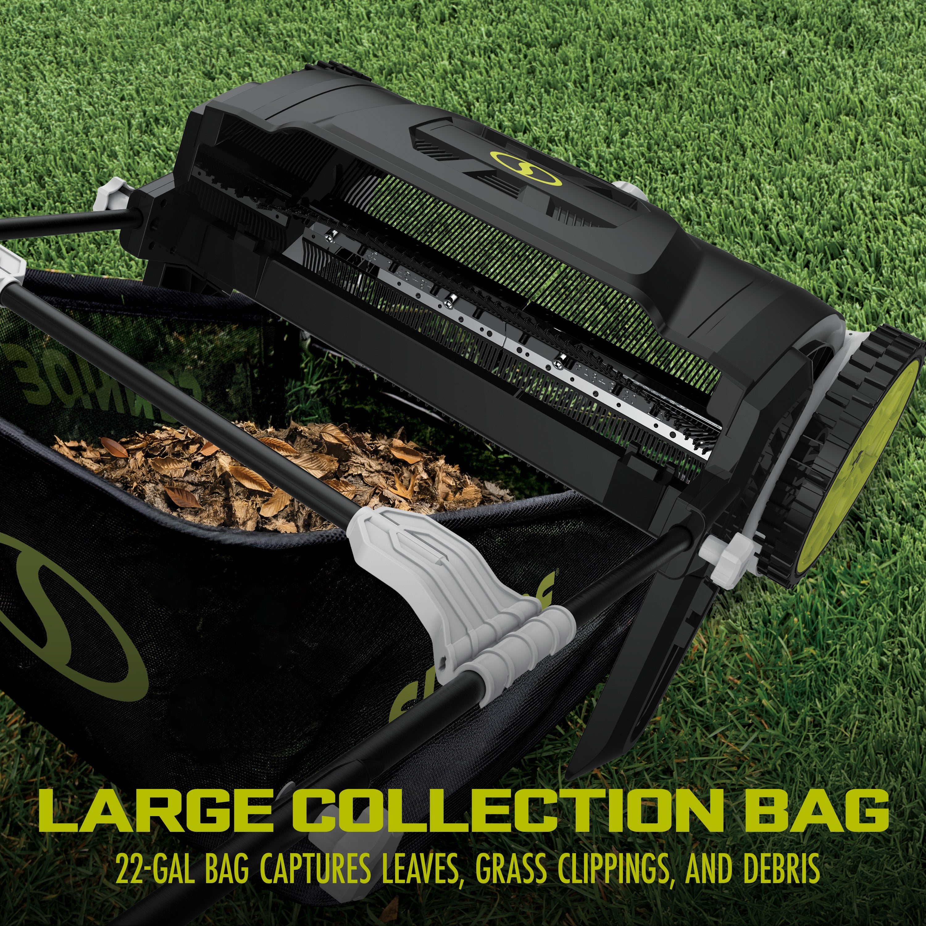 - LARGE COLLECTION BIN: 22-gallon (84 L) bag captures leaves, grass clippings, and debris