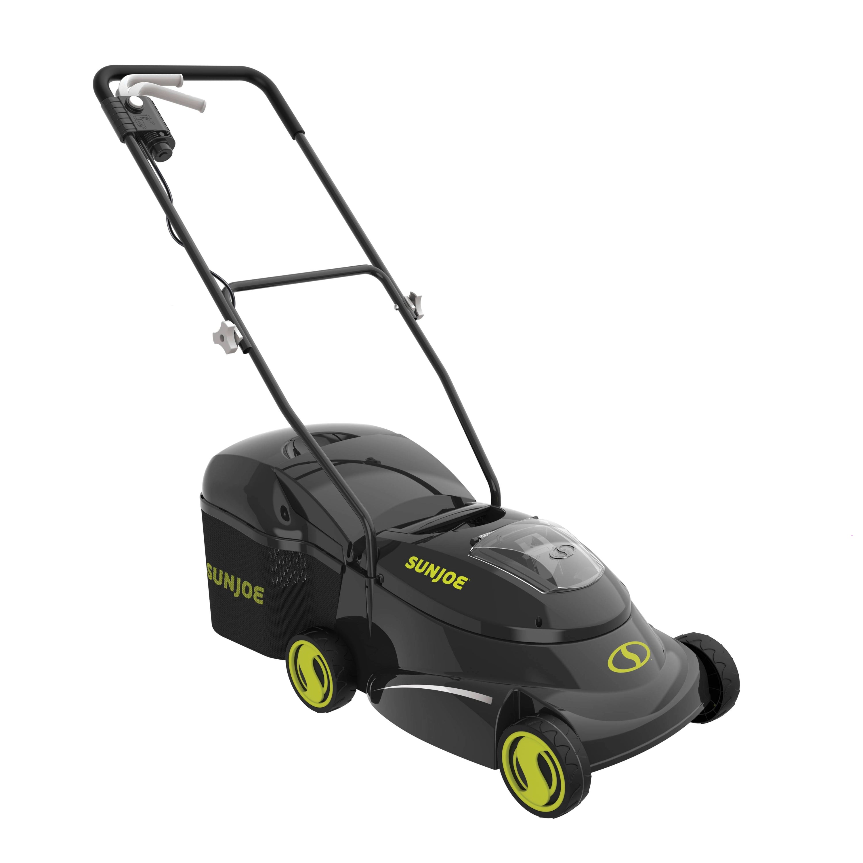 LAWN RANGER! Ditch the cord and gas and cut the grass with MJ24C-14-XR 24-Volt* Cordless Lawn Mower from SUN JOE and restore a little eco-friendly “lawn order” to your yard with the greener, gas-free grass-grooming solution. MJ24C-14-XR delivers all the power of a gas machine, with the performance of an electric — with no gas, fumes, fuss, or tangled extension cords! Perfect for small to medium-sized lawns, the powerful, 24-Volt* 5.0 Ah lithium-ion battery lasts up to 42 minutes on a single charge. When you’re ready to mow, simply insert the key, power-up and go! MJ24C-14-XR’s 600 W motor and durable steel blade cuts a 14” wide path in a single pass. Featuring 3-position height adjustment — from 1.18” to 2.52” — you can tailor to the perfect, precise cutting height to suit your yard. Collect the clippings with the convenient 10.6 gallon grass bag, and detach for quick and easy disposal. Plus, MJ24C-14-XR’s folding, collapsible handle makes storage a breeze!