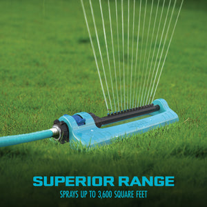 Aqua Joe SJI-OMS16 Indestructible Metal Base Oscillating Sprinkler | Adjustable Spray Patterns | 3,600 Sq. Ft. Max Coverage