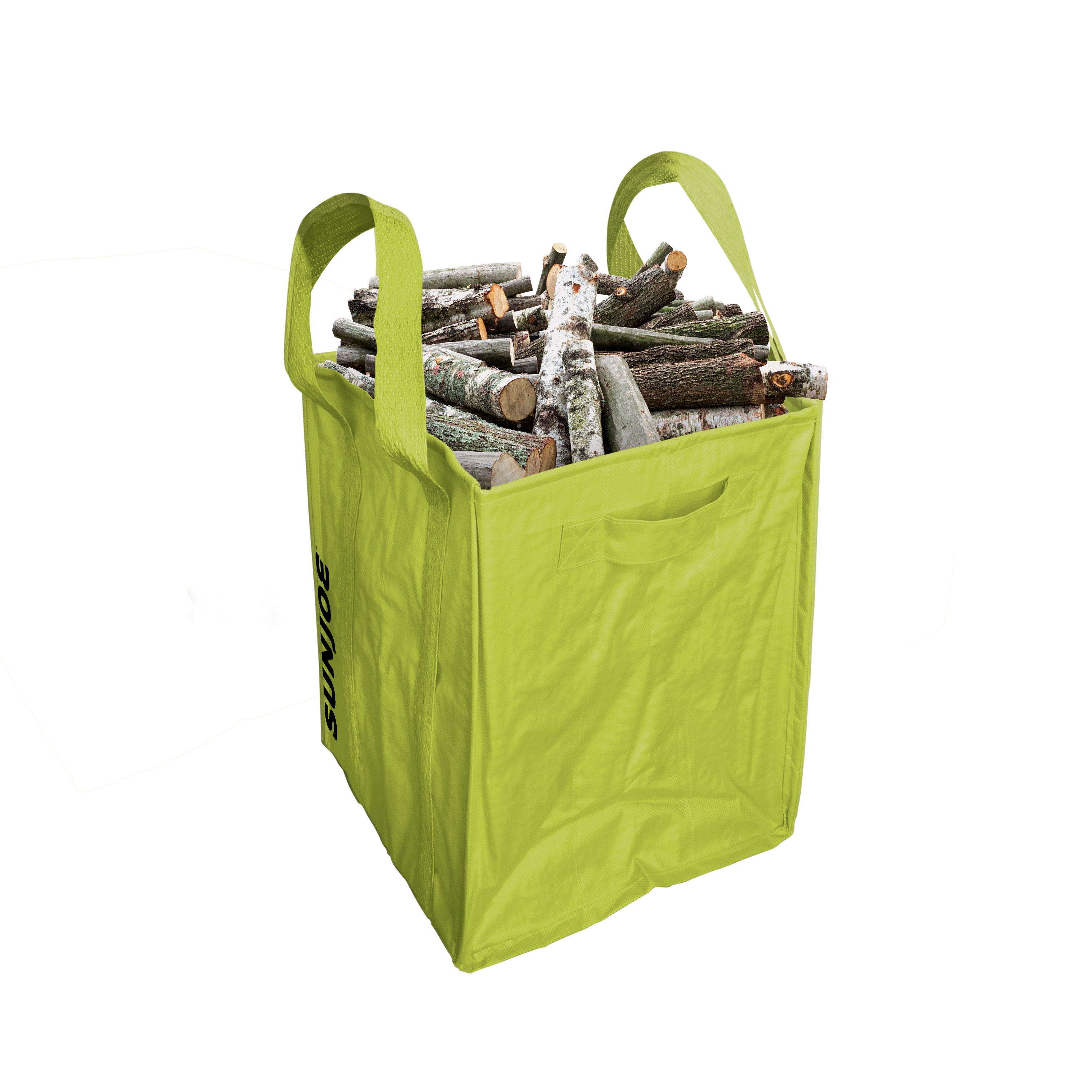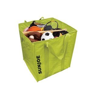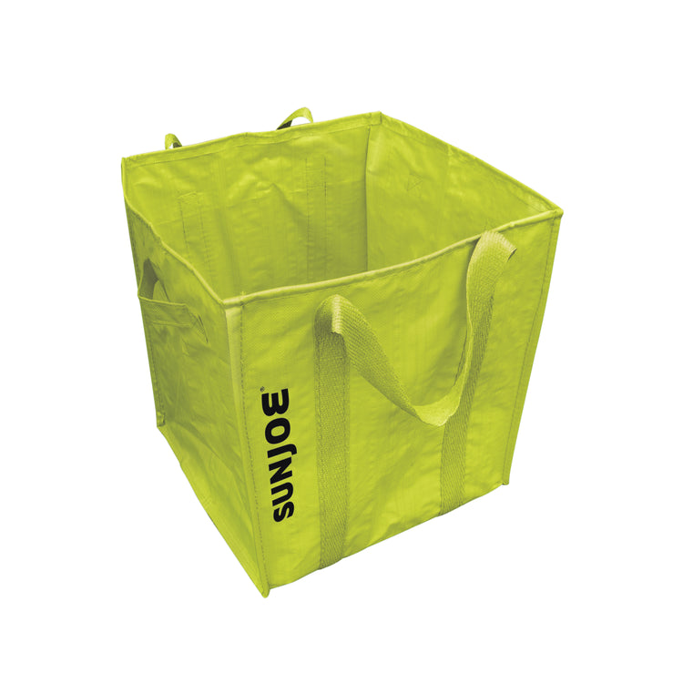 LOAD IT TOTE IT! Go beyond the yard and garden with the SJLB48HD 48-Gal Heavy-Duty All-Purpose Tote Bag from SUN JOE. Made from woven polypropylene material, SUN JOE is weather-proof, water-proof, and rip-resistant for years of reliable use. The eco-friendly, reusable bag is perfect for lawn leaf cleanups, shopping trips to the big box stores or garden center, transporting toys and towels to the beach, storing sports equipment after the big game, and so much more! The heavy-duty design with reinforced handles is built to hold without ripping or tearing! Tote yard garden tools, transport logs, bricks, recycling, and anything else you’re able to load. Quick easy to rinse and reuse. The roomy, semi-rigid, pop-up assembly stands up and open on its own, making loading easier than ever. And the flexible, woven material folds down neatly for compact storage after use. So, GO WITH JOE® and let SUN JOE® be your go-to bag for more than just leaves!