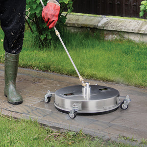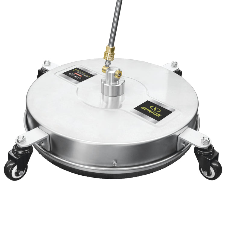 The Sun Joe SPX-SC17 Universal Surface Cleaner Pressure Washer Attachment delivers professional-grade cleaning power for large outdoor surfaces. Built to handle up to 4000 PSI and 4.0 GPM, it makes quick work of dirt, grime, and tough stains on driveways, patios, decks, and sidewalks. Designed for versatility and durability, it operates with water temperatures up to 300 °F, giving you the extra cleaning strength you need for stubborn buildup. Compact yet powerful, the surface cleaner measures 17.5" x 6.3" x 17.5" and glides smoothly on 1.9-inch wheels for easy maneuverability. Weighing just 9.7 pounds and featuring a 15.9-inch extension wand, the SPX-SC17 is lightweight, easy to control, and built to make outdoor cleaning faster, easier, and more efficient.