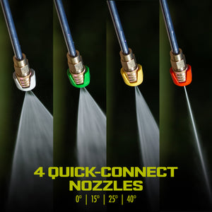 - XTREAM CLEANING: 4 quick-connect nozzles (0°, 15°, 25°, 40°) in a range of spray patterns from pin-point jet to fan spray tackle heavy, medium, and light duty jobs