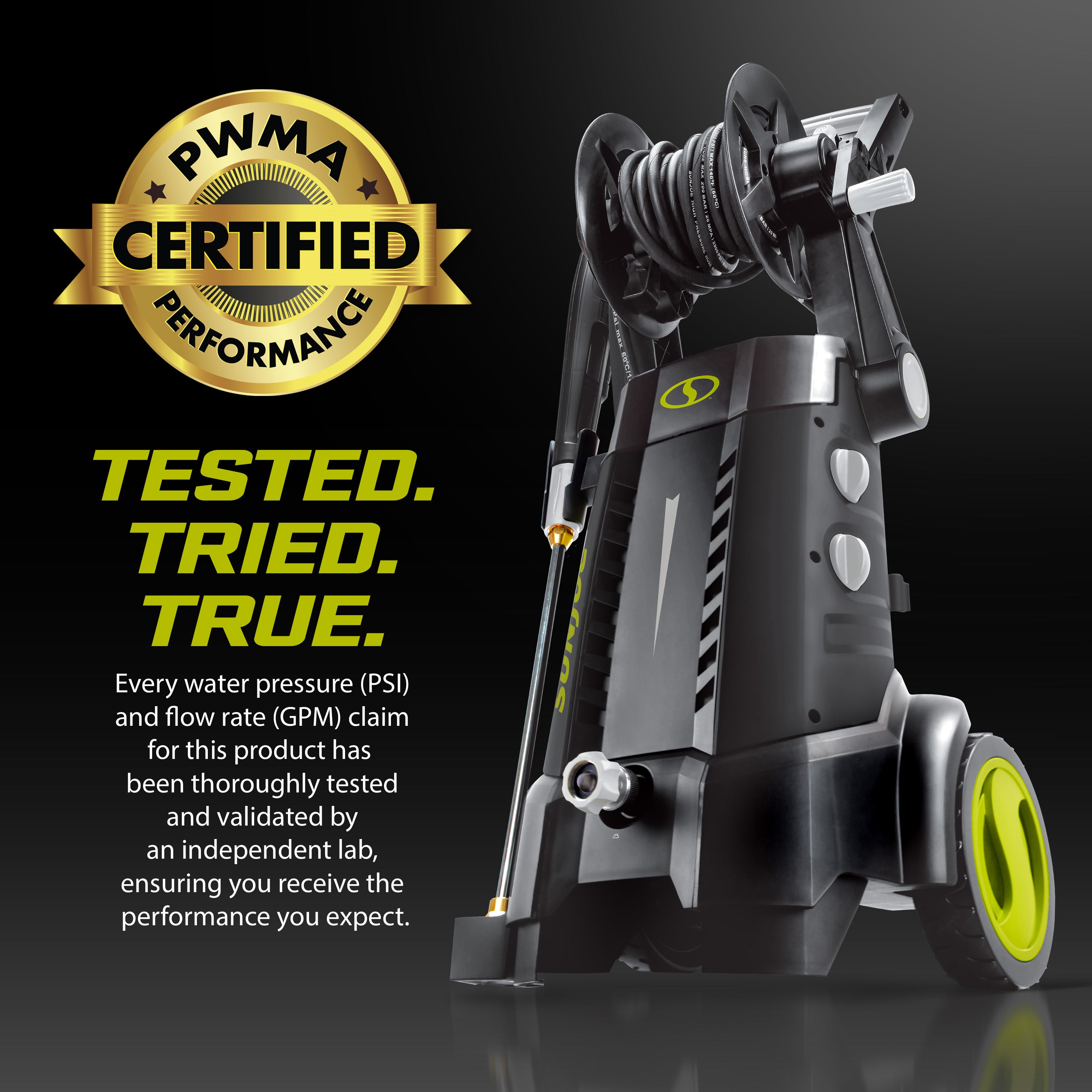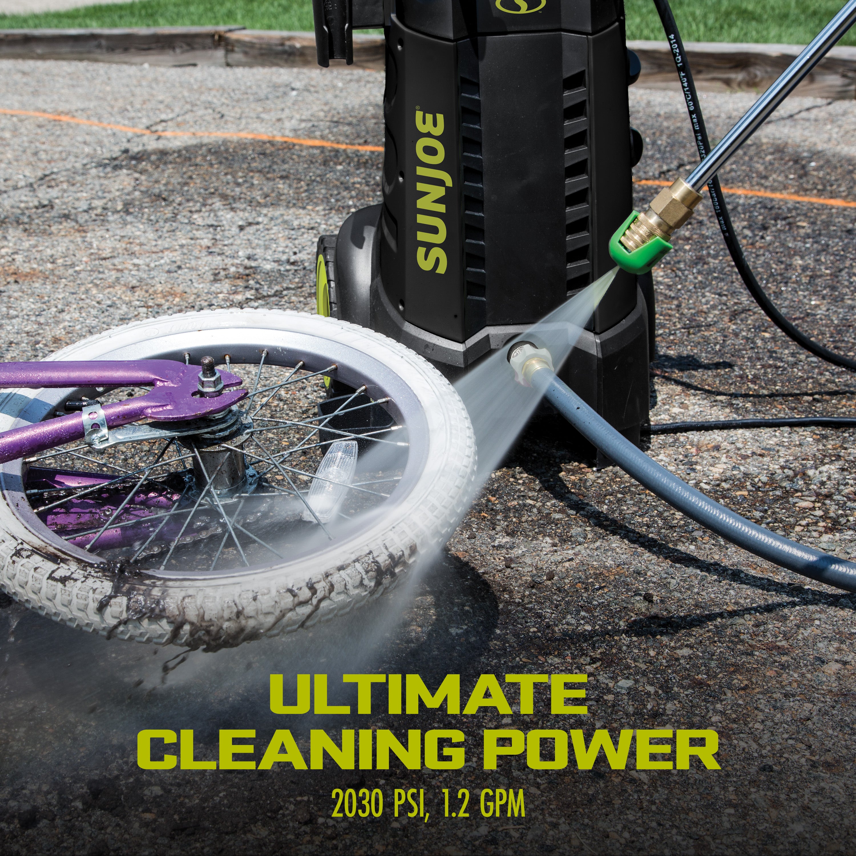 POWER AND PERFORMANCE UNDER PRESSURE! Tackle your toughest home, outdoor and auto cleaning projects with ease! Packed with a powerful 13-amp motor, the Sun Joe® SPX3001 generates up to 2030 rated PSI of water pressure and 1.2 rated GPM of water flow to remove road tar, tree sap and insect splats from cars, grease deposits from concrete, heavy mildew, oil and rust stains, caked on mud, and other stubborn yard and garden gunk and grime.