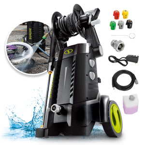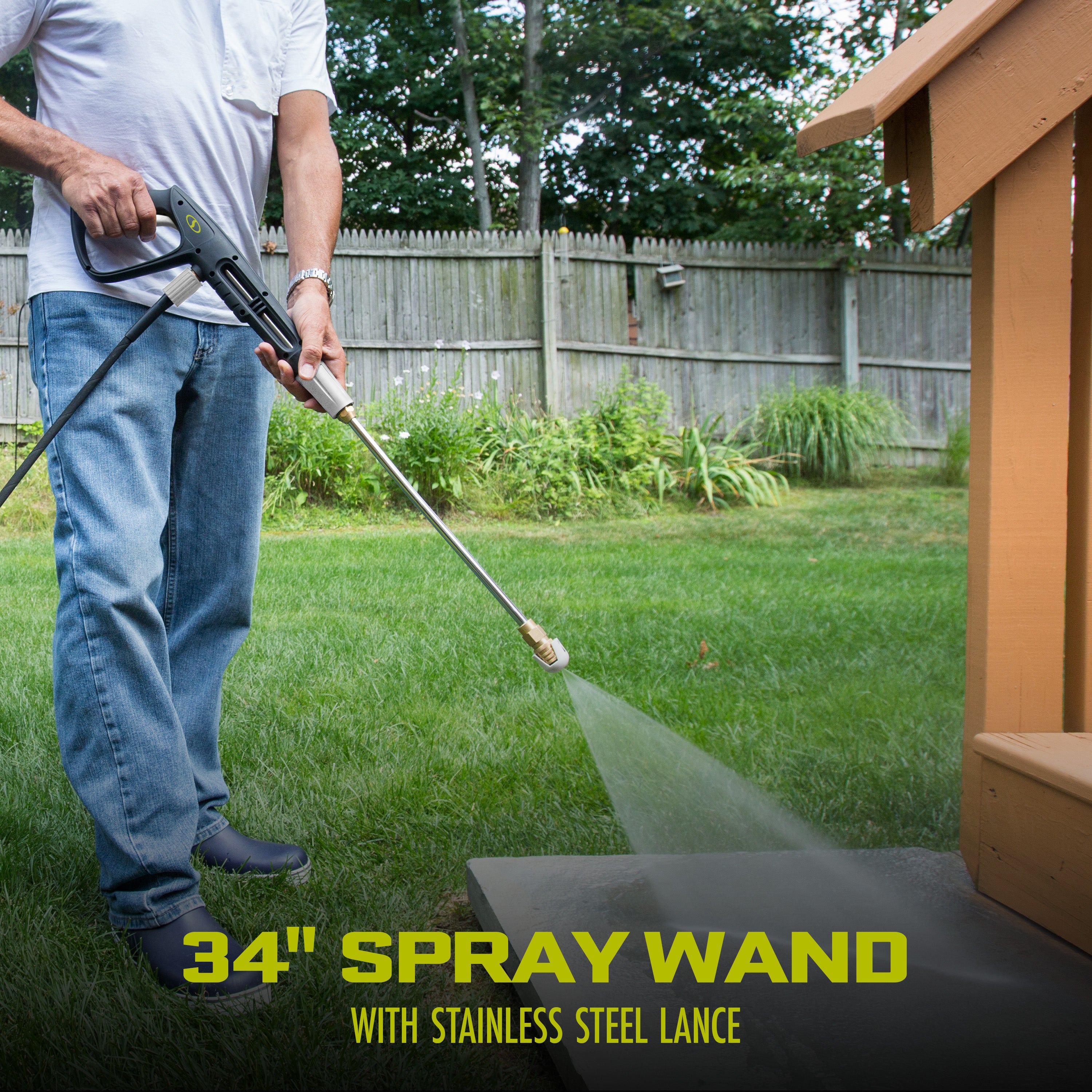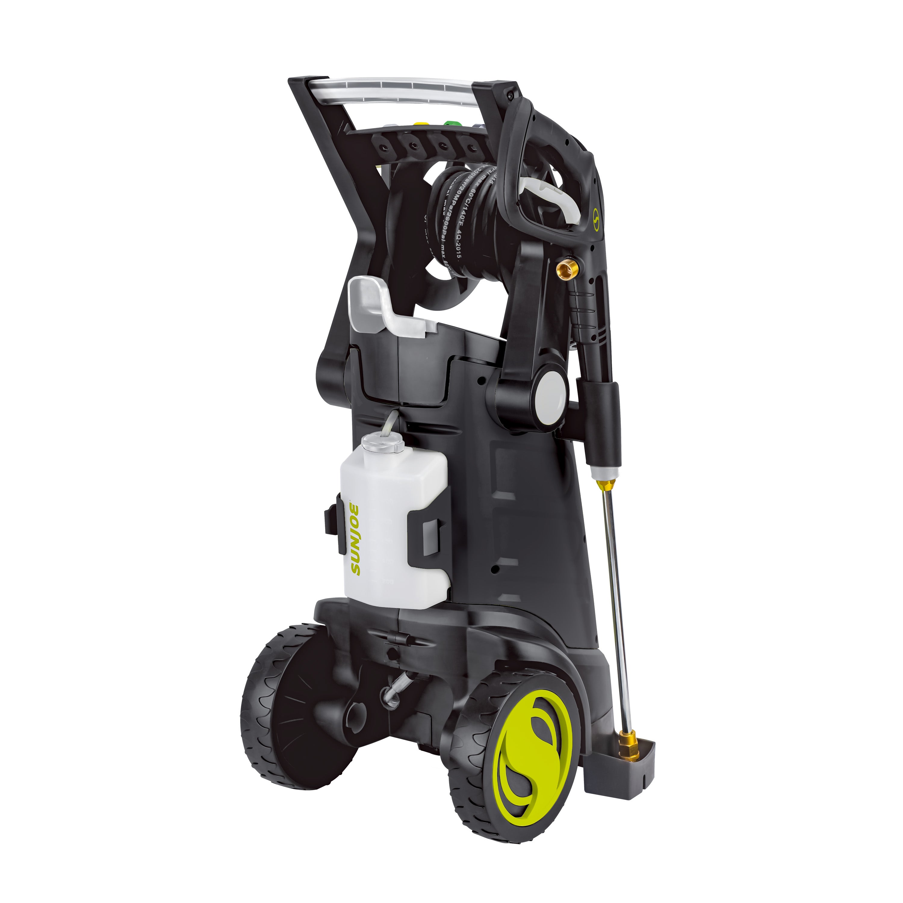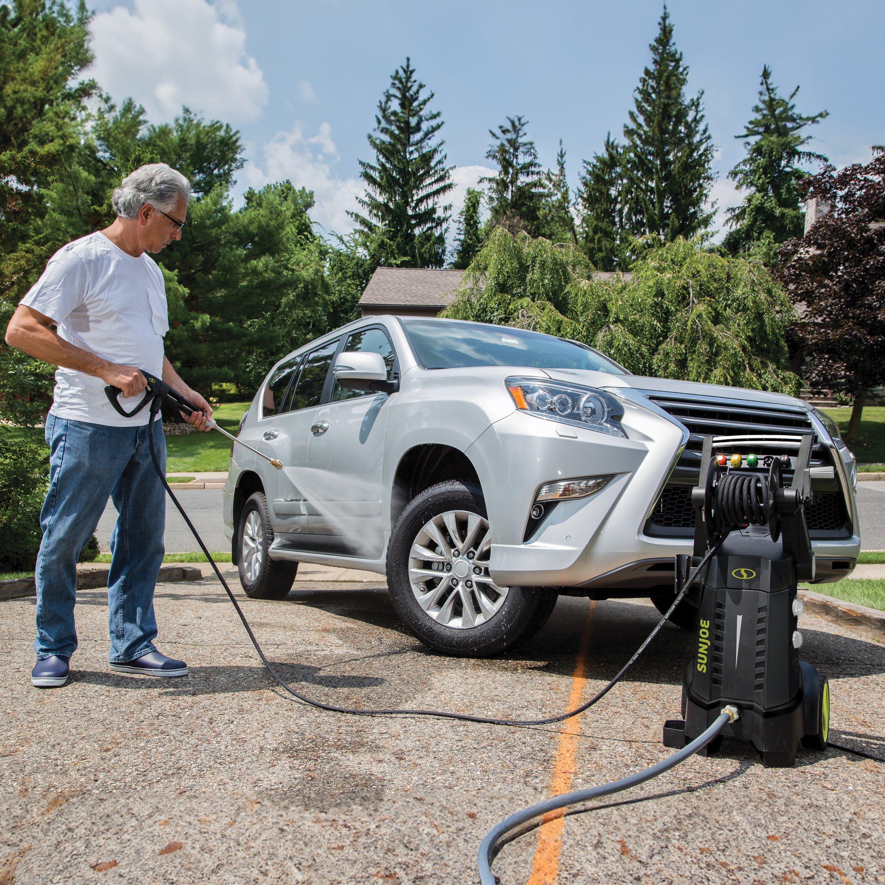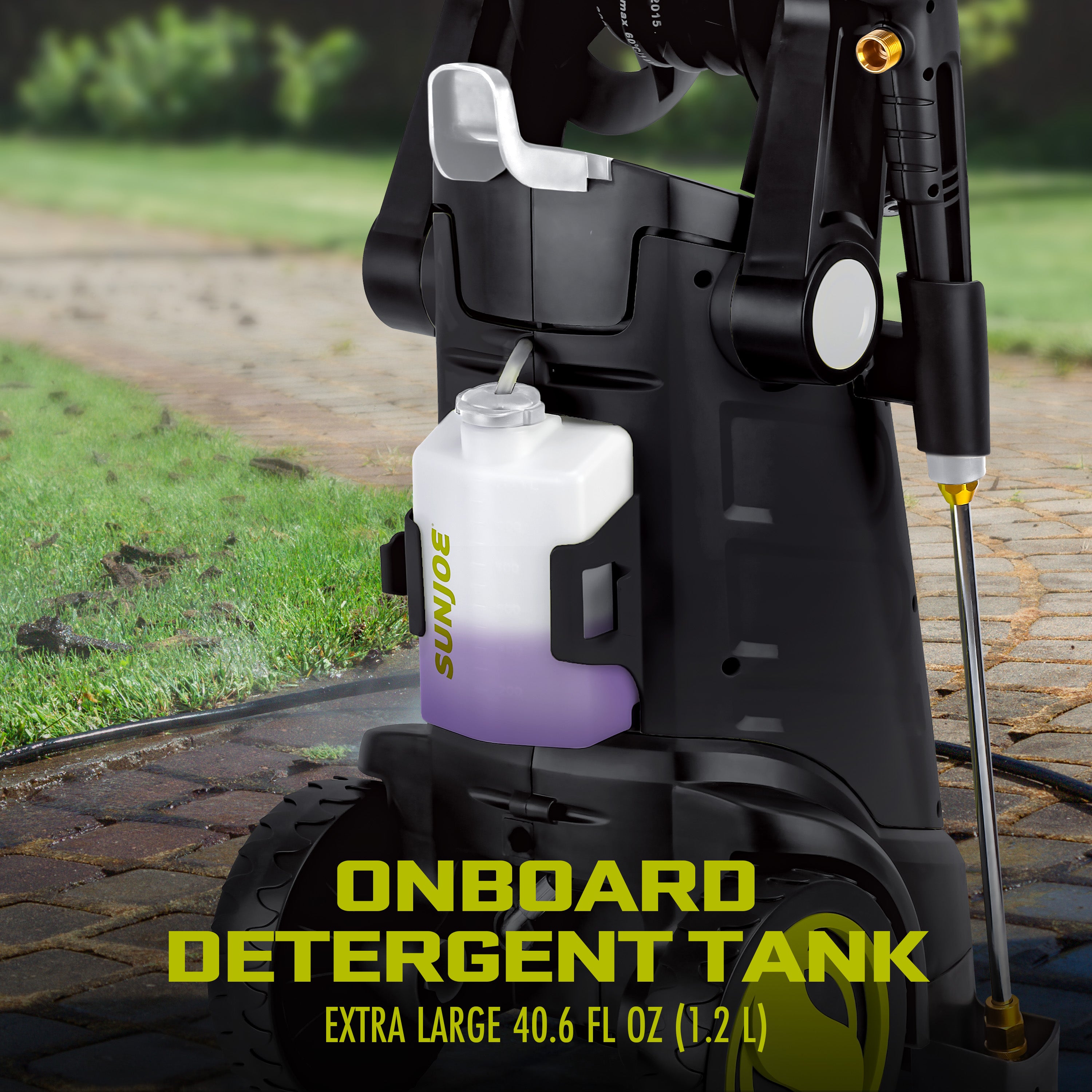 The Sun Joe SPX3001 electric pressure washer comes equipped with an extra large 40.6 fl oz (1.2-liter) onboard detergent tank – perfect for blasting dirt and debris off your windows, cars, RVs, boats, ATVs, trailers, siding, barbecues, and more. Its 34-inch extension spray wand and rear wheels provide maximum maneuverability and easy access to tight spaces such as beneath decks, behind grills, gutters and patio furniture as well as the undersides of automotive vehicles and heavy gardening equipment.