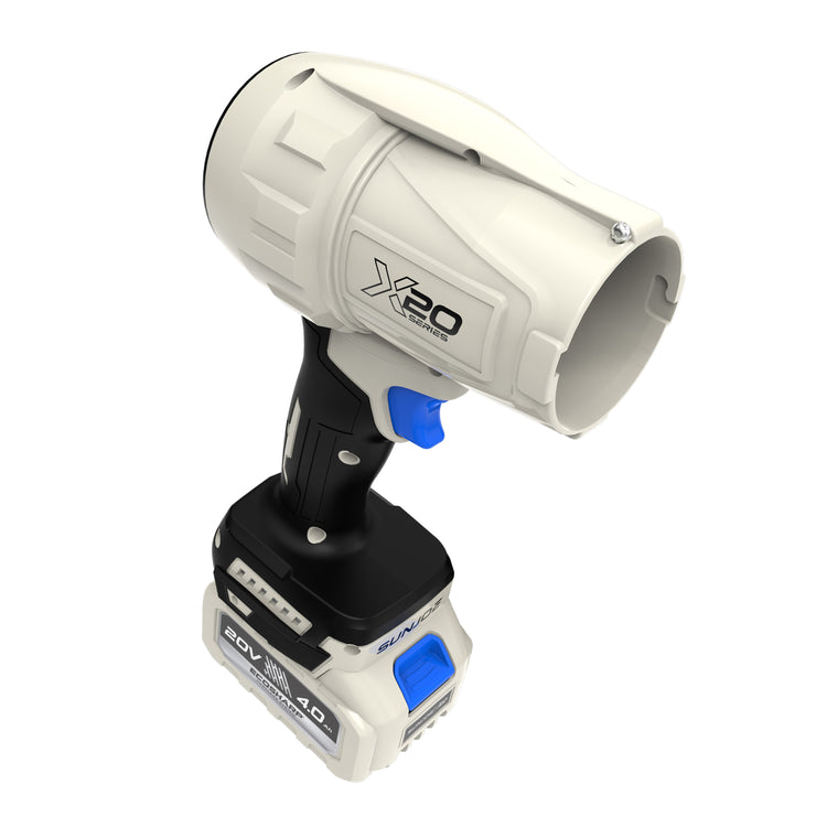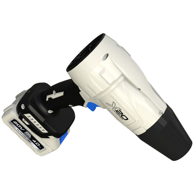 Powered by our ECOSHARP® lithium-ion system, the two included 4.0Ah batteries deliver no-fade power with zero emissions for a cleaner, quieter clean—indoors or out. Only STORMJET pairs gas-free convenience with cutting-edge, high-RPM performance to tackle tight spaces where bigger blowers can’t. The ultra-efficient 30,000-RPM motor drives up to 40 CFM of focused airflow to sweep away dust and debris in seconds, while the precision nozzle puts control right at your fingertips. And at just 3 lb with both batteries, STORMJET is the everyday essential you’ll reach for—around the shop, the car, the patio, and beyond.
